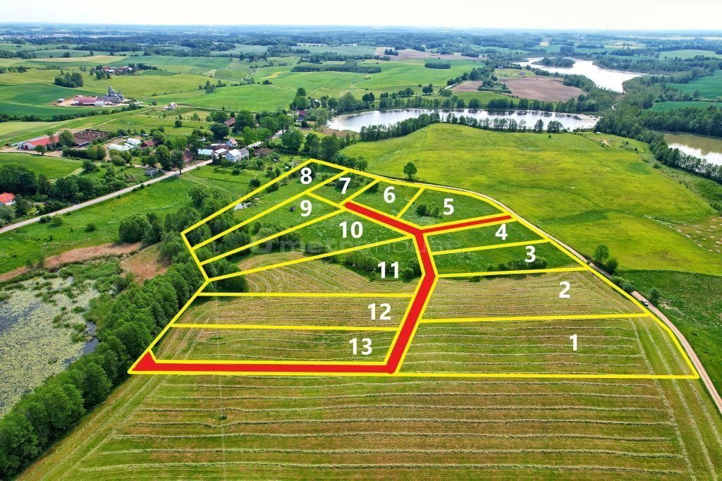 Działka nr 13: pow. 3700 m² (124 m x 30 m) bezpośredni dostęp do jeziora