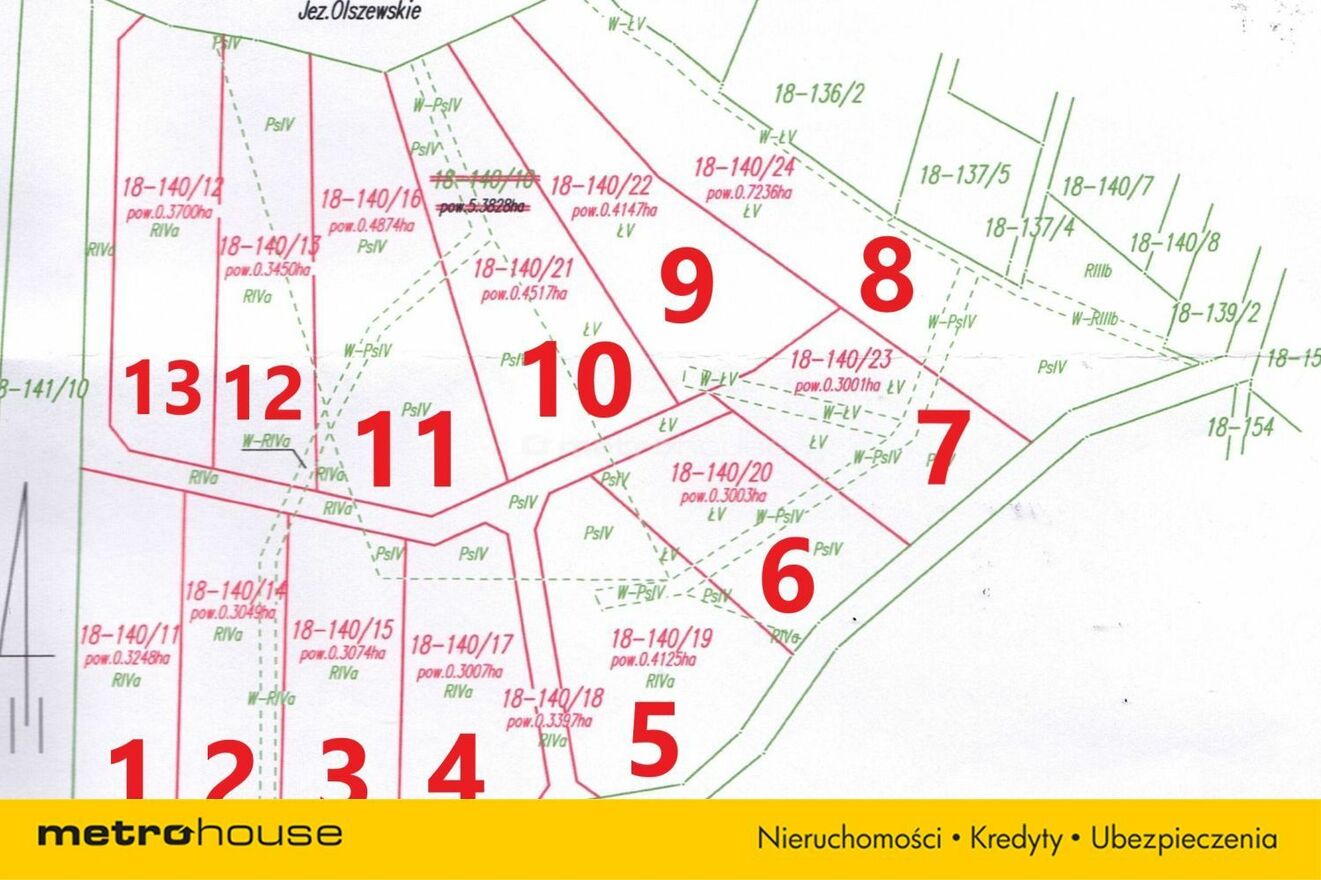 Kompleks 13 malowniczych działek nad Jeziorem Olszewskim Olszewo, gm. OleckoPowierzchnie: od 3001 m² do 6290 m² Cena: 35 zł/m² Media: wodociąg, prąd